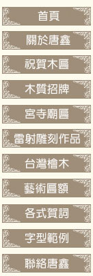 (如特殊規格、九龍、雙龍、浮彫...等價格另議)。各式木匾請至木匾作品區參觀